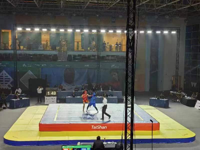 第三届世界武搏运动会武术比赛于10月21日至22日在沙特国王大学体育馆进行,吸引了来自五大洲的31个国家和地区的近80位运动员参赛。武术项目首个比赛日中,共产生男子长拳与女子长拳两枚金牌。其中,尼泊尔、中国各获一金。作为本届世界武搏运动会器材供应商与服务商,pg麻将胡了2电子体育再一次助力世界武搏运动会的高水平举办。