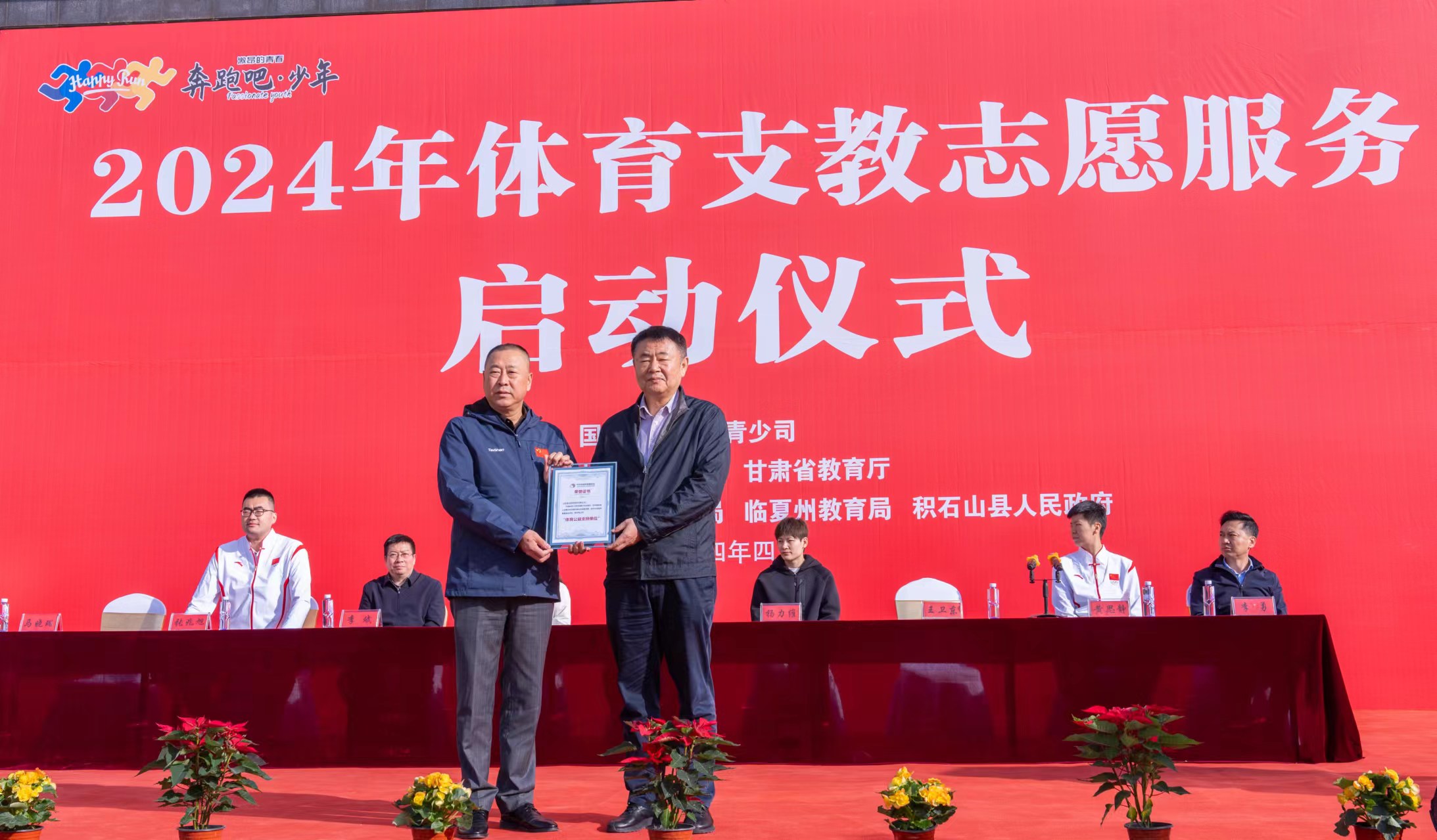 【概要描述】4月23至24日,体育支教志愿服务工作培训会、座谈会、体育明星进校园活动暨2024年体育支教志愿服务工作启动仪式,在甘肃省兰州市城关区东岗西路555号海悦温德姆酒店举行。△ 2024年体育支教志愿服务启动仪式场景 体育总局青少司领导;山西、内蒙古、江西、四川等9省(区)体育局青少处负责同志、具体负责同志和本省牵头高校相关部门负责人;中华全国体育基金会、武汉体育学院相关部门负责同志;北京体育大学、上