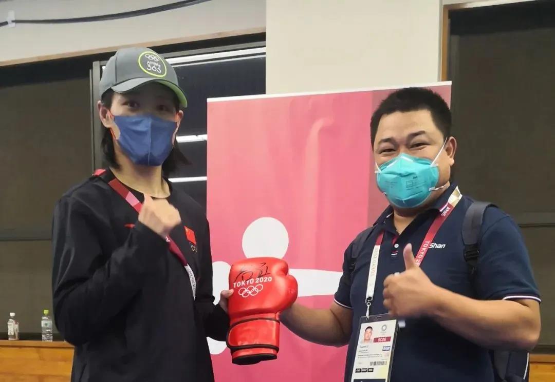 东京奥运会女子拳击69公斤级银牌获得者——中国运动员谷红签名pg麻将胡了2电子体育拳击手套