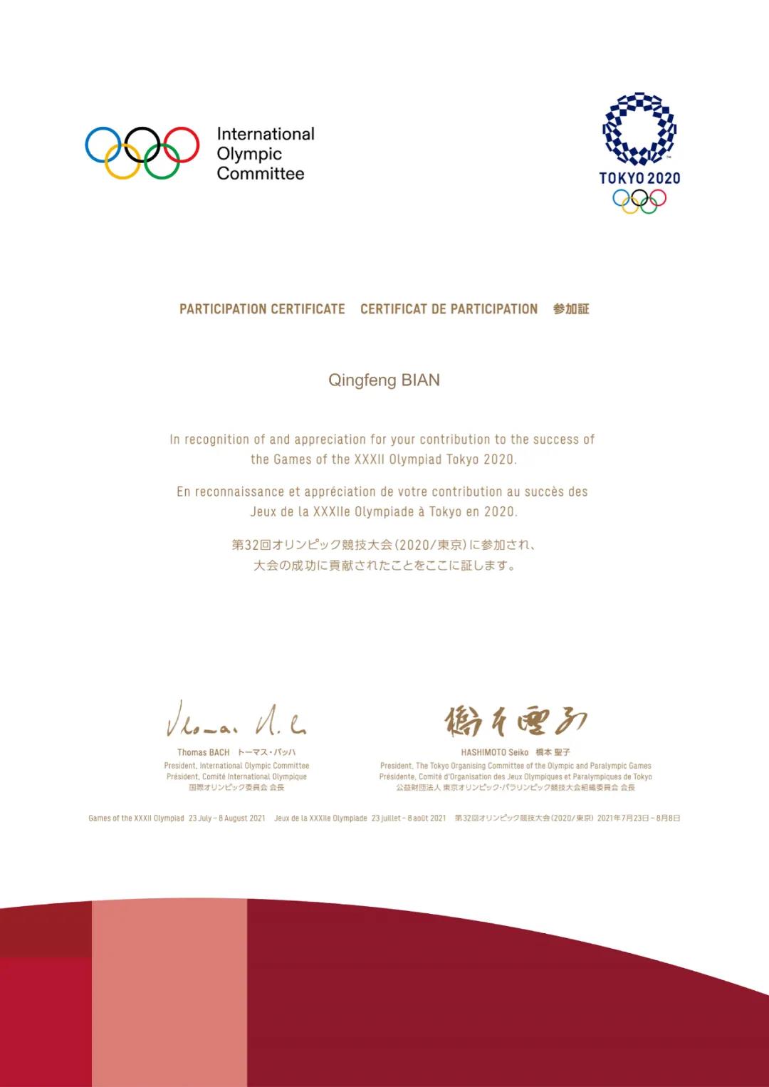 2020东京奥运会组委会给pg麻将胡了2电子体育的感谢信