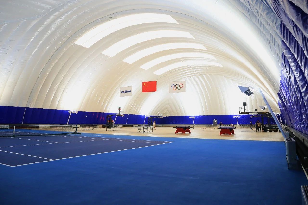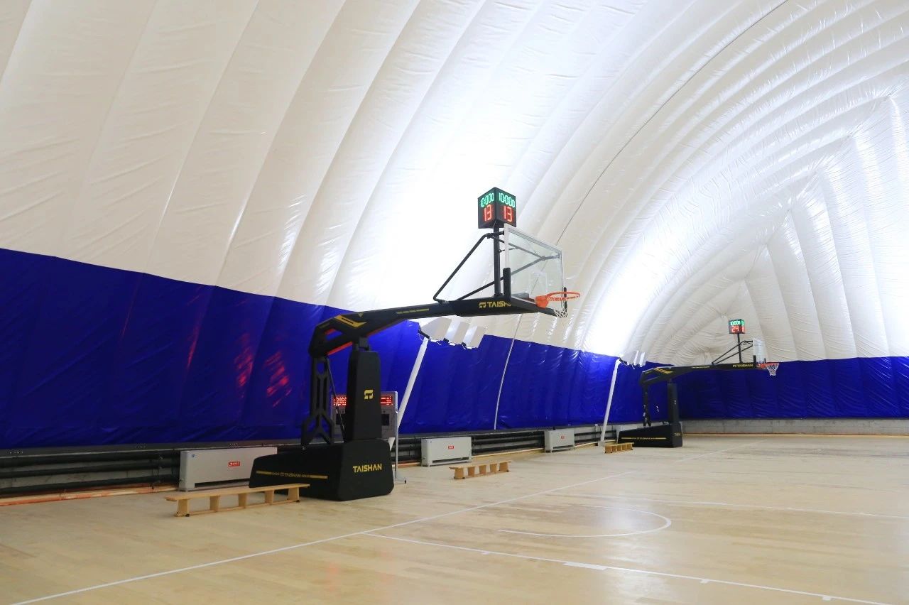 值得一提的是,综合运动馆采用气承式膜结构新型体育建筑,内部设置2片篮球场、6片乒乓球场地及一片网球场,可以满足体育运动,体育教学及群众比赛的需求。